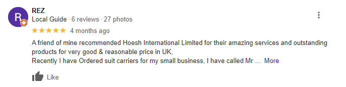 A friend of mine recommended Hoesh International Limited for their amazing services and outstanding products for very good & reasonable price in UK,